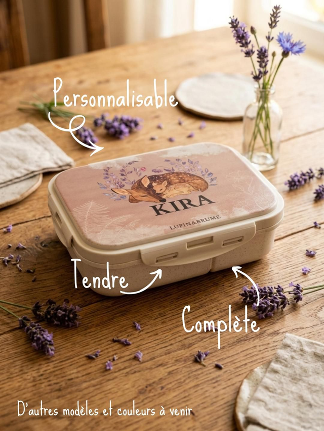 Faites plaisir à votre enfant et simplifiez-vous la vie avec la boîte à goûter Lupin&Brume, unique et complète :