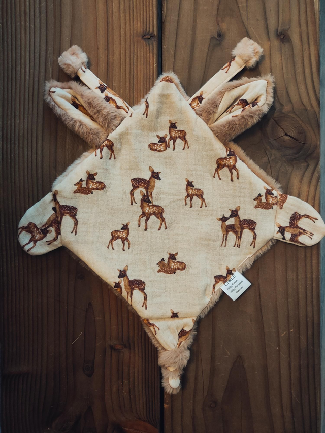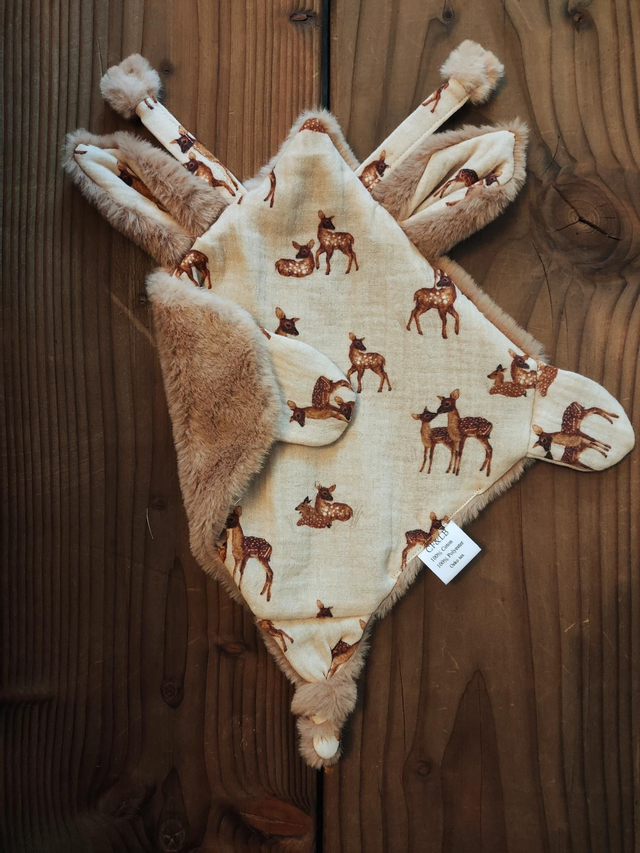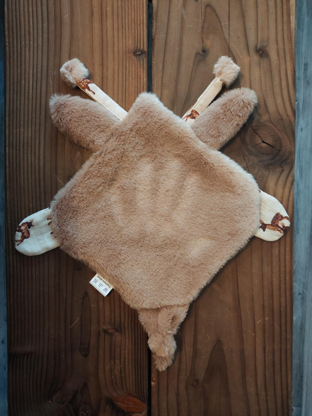 Il contient un bavoir, un hochet lune, un hochet bruissant de dentition et un doudou plat
