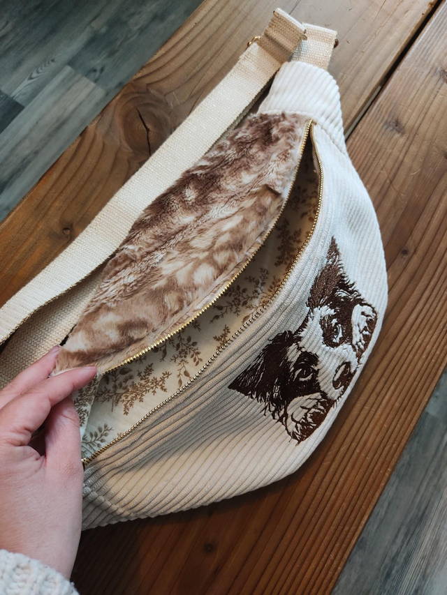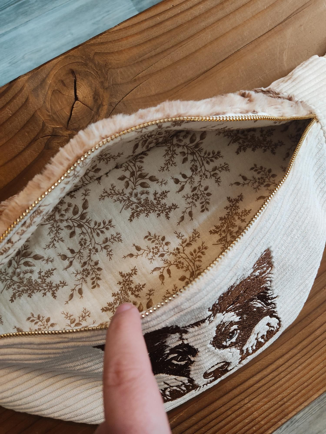 En velours grosse côte tout doux, sublimé par la broderie de ce magnifique compagnon marron.