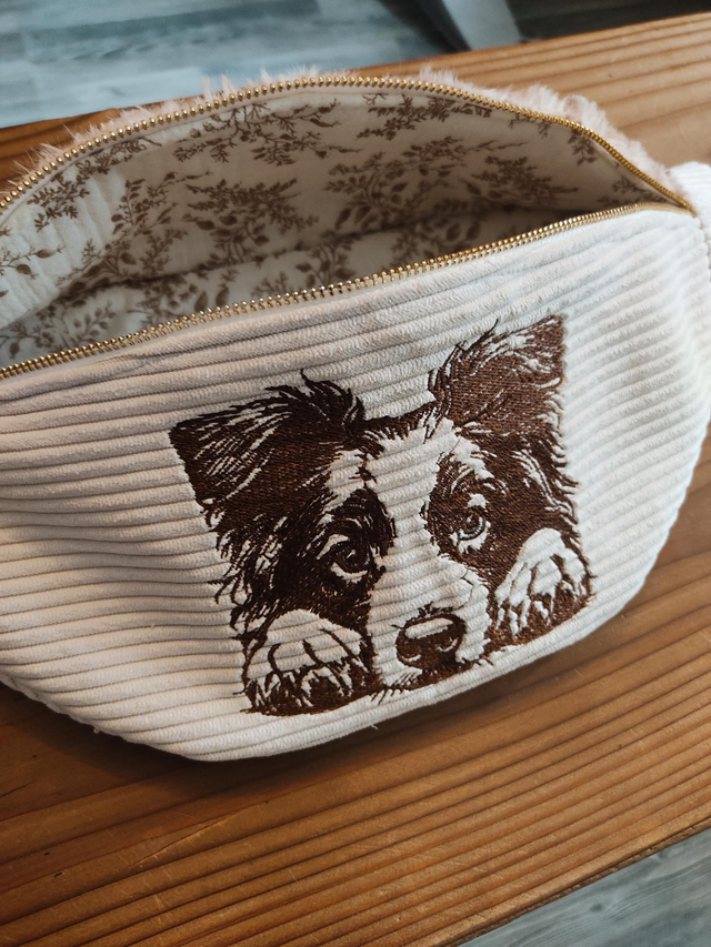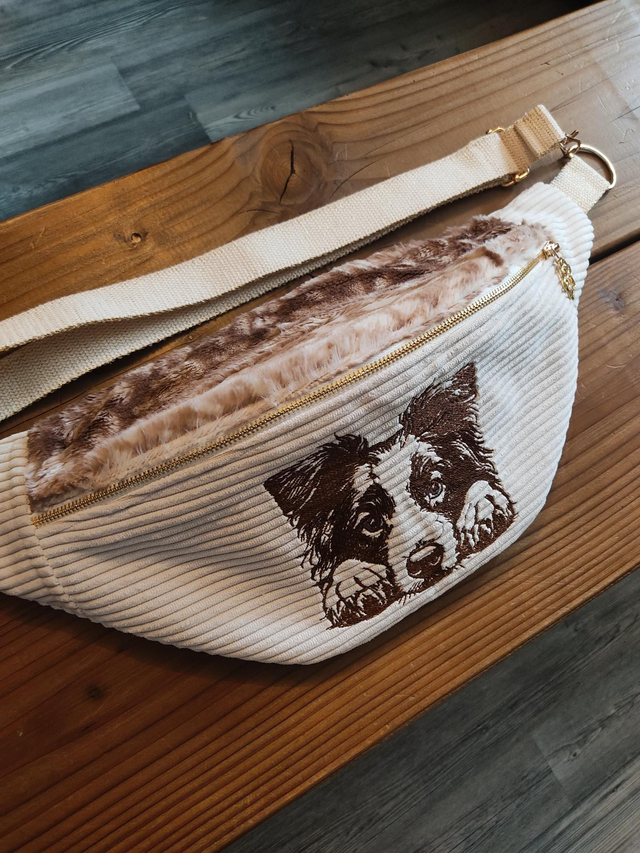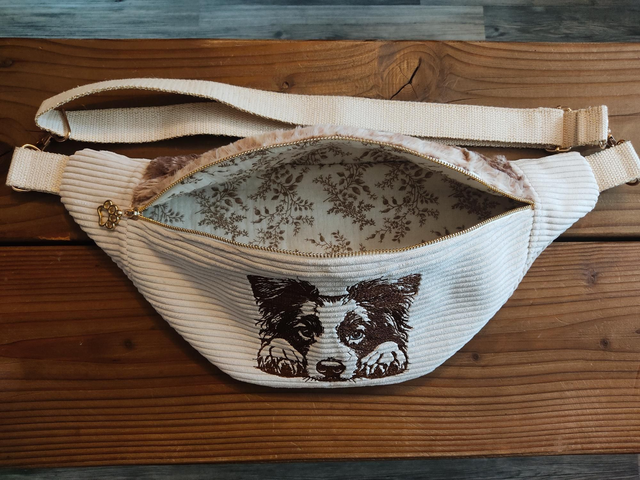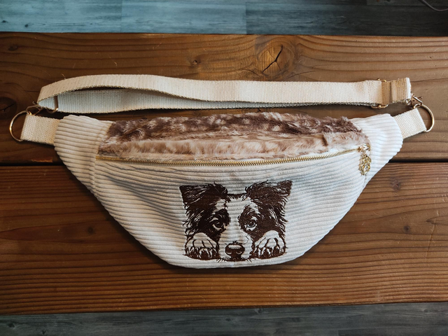 Voici notre sac banane Border Collie Merle Rouge 🤎